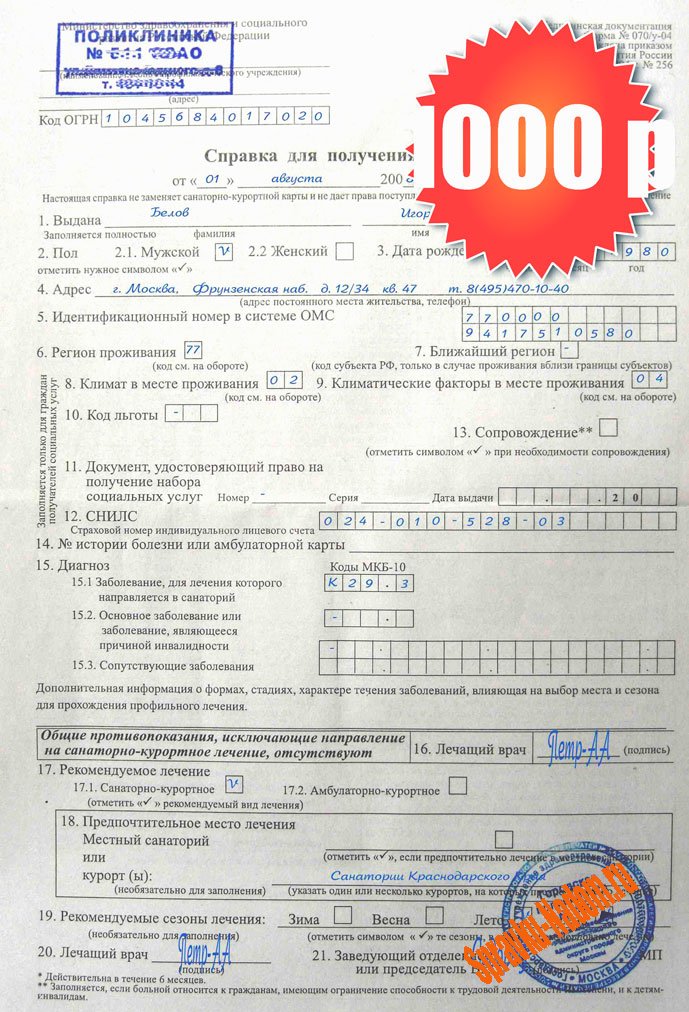 Чтобы долго не ждать, пока комиссия вынесет вердикт, можно оформить документ в частной клинике. Там это происходит за день. Но такая скорость будет стоить больших денег. Зачем их переплачивать? Ведь можно просто купить платную путевку, по цене будет сравнимо. Посещение частной клиники для оформления справки 070 у 04 для льготной путевки не имеет никакого смысла, поскольку это дорого. Проще купить готовую справку 070 у-04 в интернете. Такая цена на справку 070 у 04 будет куда лояльней.