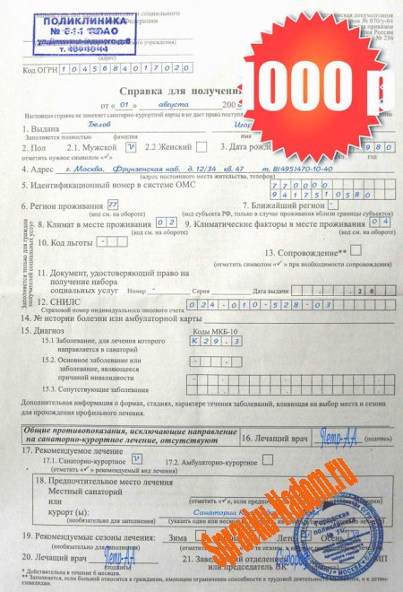Для начала нужно скачать образец справки для льготного посещения санатория в интернете. В ней содержится довольно много записей и печатей, нужно знать, как документ выглядит. После этого можно искатьспециальный сервис, где можно ее приобрести.