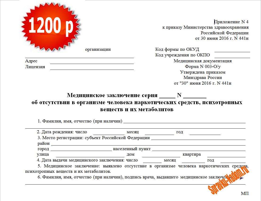 Медицинская справка формы 003 О/у содержит в себе результаты проведенных ХТИ . Целью обследования является определения наличия или отсутствия в организме заявителя следов наркотических веществ.Купить справку 003 о/у